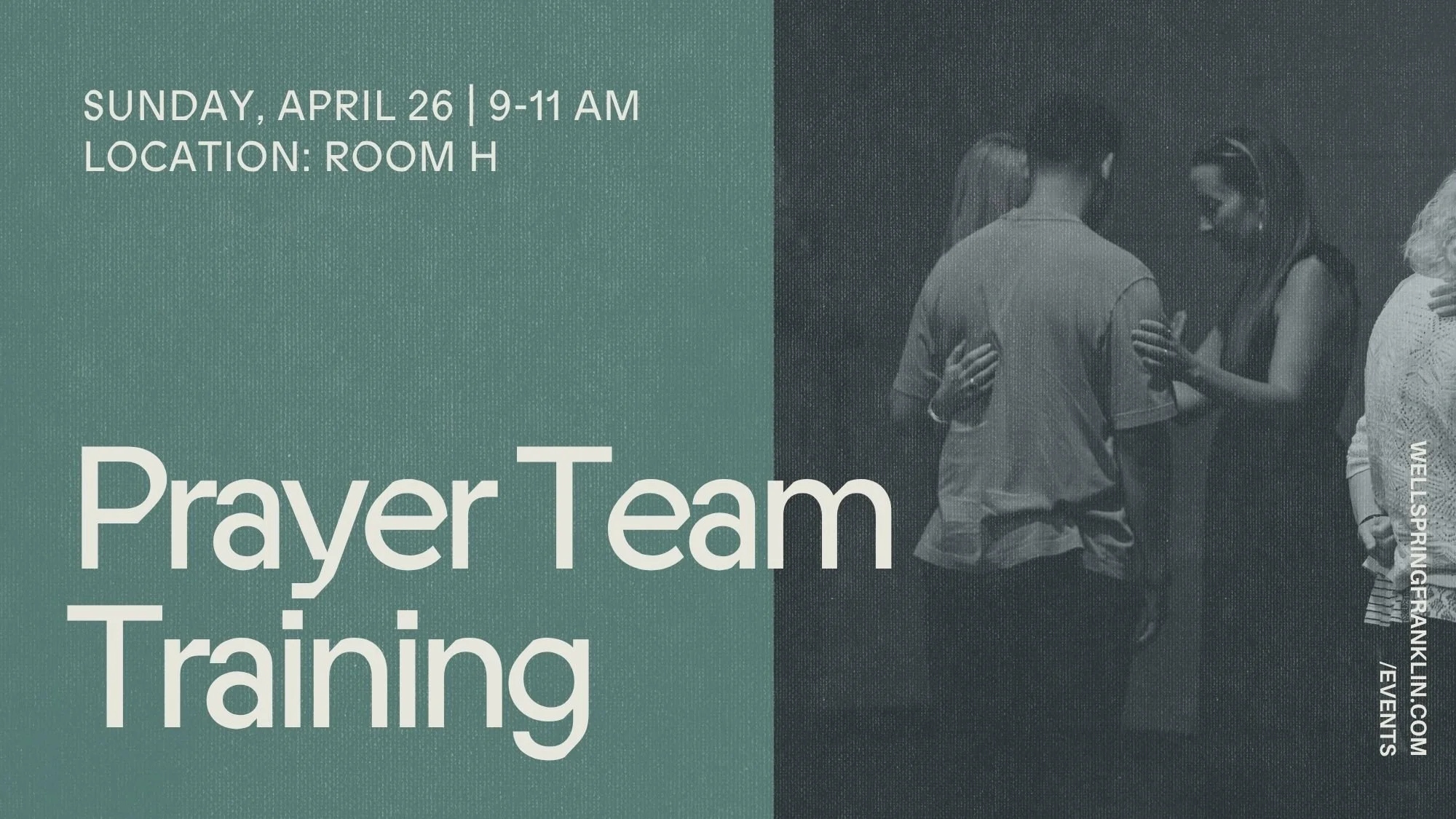If you are interested in being empowered to pray for other people in your everyday life or in joining our Prayer Ministry Team that prays at the end of service on Sundays, join us for our Prayer Team Training on Sunday, April 26, at 9 AM in the Room H. This will include practical teaching and hands-on activation (and coffee!).
